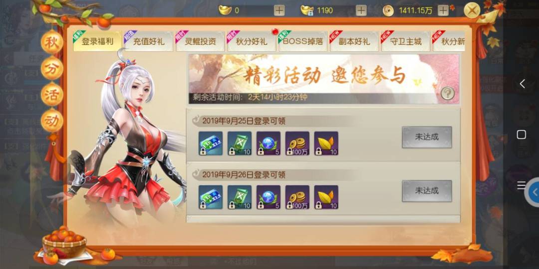 飞天魅影的小伙伴们大家好呀!! 昨天是我们的秋分呐~~ 我们为大家带来了秋分活动呦! 我来带大家看看都有什么!! 一、登录有礼 登录好礼领不停!活动期间,每日登录便可领取丰厚奖励! 二、秋分好礼 当全服华丽度达到指定额度,即可激活全服buff/全服奖励,更有足迹、武饰心愿盒、红色时装-赤麟焰灵等你获取 三、星语心愿 红色时装-赤麟焰灵、红色武饰-赤灵玄刃炽热上线~许愿必定获取你想要的!当星愿值达到