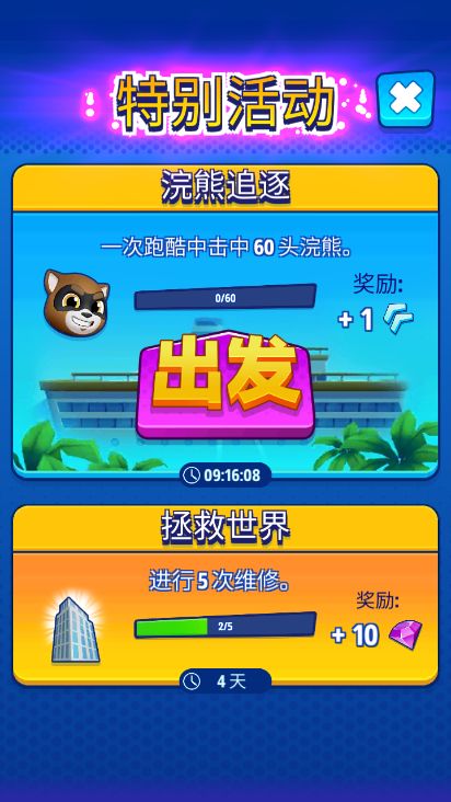 《汤姆猫英雄跑酷》是一款跑酷节奏题材手游,对于喜欢类似跑酷游戏享受真实的小伙伴们来说,在这款跑酷游戏里玩家能够方便的上手享受不一样的跑酷体验内容享受节奏,希望喜欢类似跑酷游戏体验的小伙伴们务必不要错过了这款游戏哦。钻石作为游戏中的稀有资源,今天就来给大家介绍一些钻石的获取途径。首先是拯救世界的特别活动,要注意的是我们需要进行5次维修才能获得钻石,因此日常囤点金币是非常重要的,不然完成不了任务就很