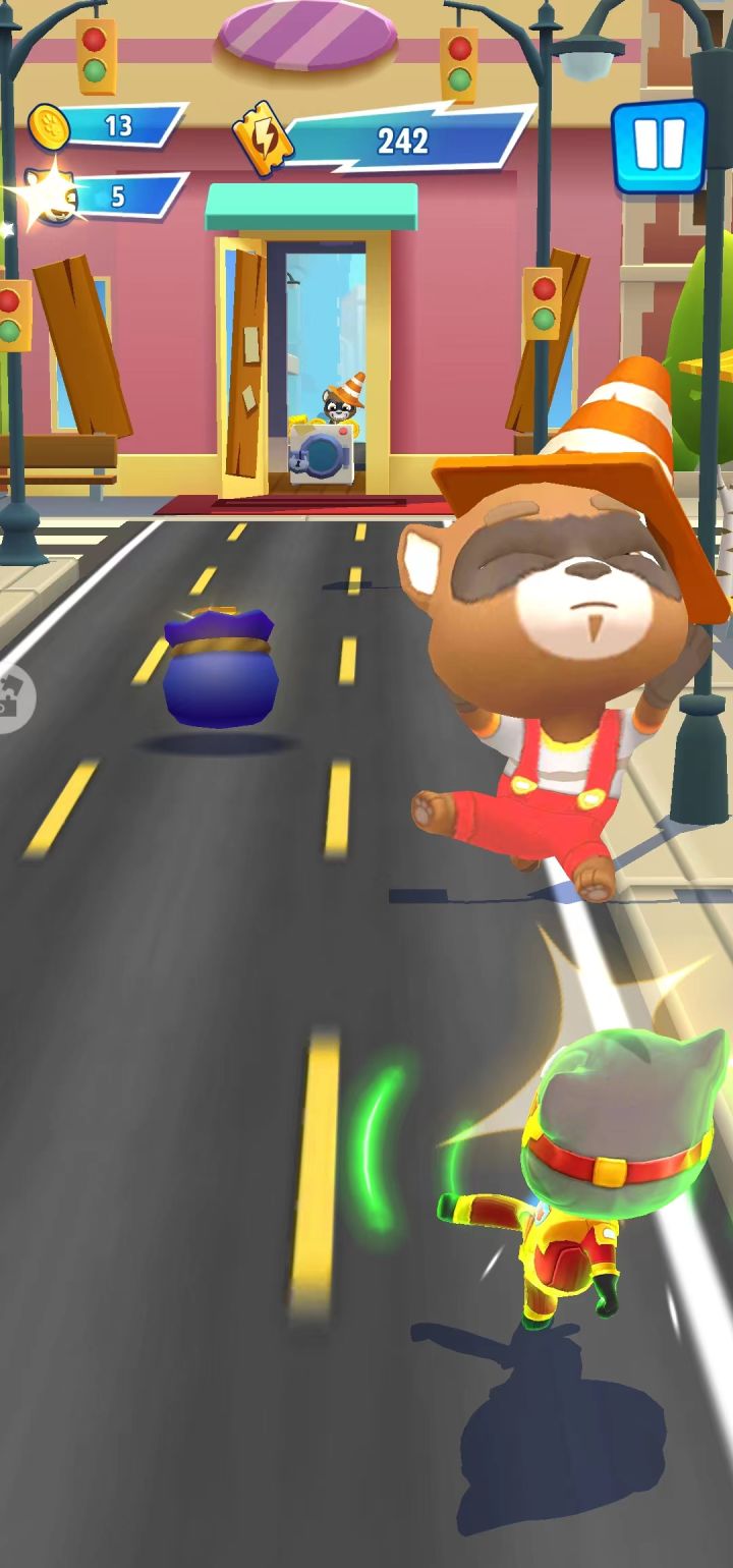 有没有想象过汤姆猫也能够化身英雄拯救世界呢?在《汤姆猫英雄跑酷》这款游戏中,每一位汤姆猫家族的成员都有各自的变身形态,保持可爱的外表的同时,也是英姿飒飒的哦!在解救伙伴以及惩除恶霸的路上有着各种各样的障碍阻挡我们前进的步伐,但是懂得游戏中的这些设定可以让我们跑出更高的分数哦。首先是大浣熊,与普通的小浣熊不同的是,他们的身板更硬,需要我们连续撞击两次才能击败他们。但是每次击败大浣熊之后,在巨大的惯