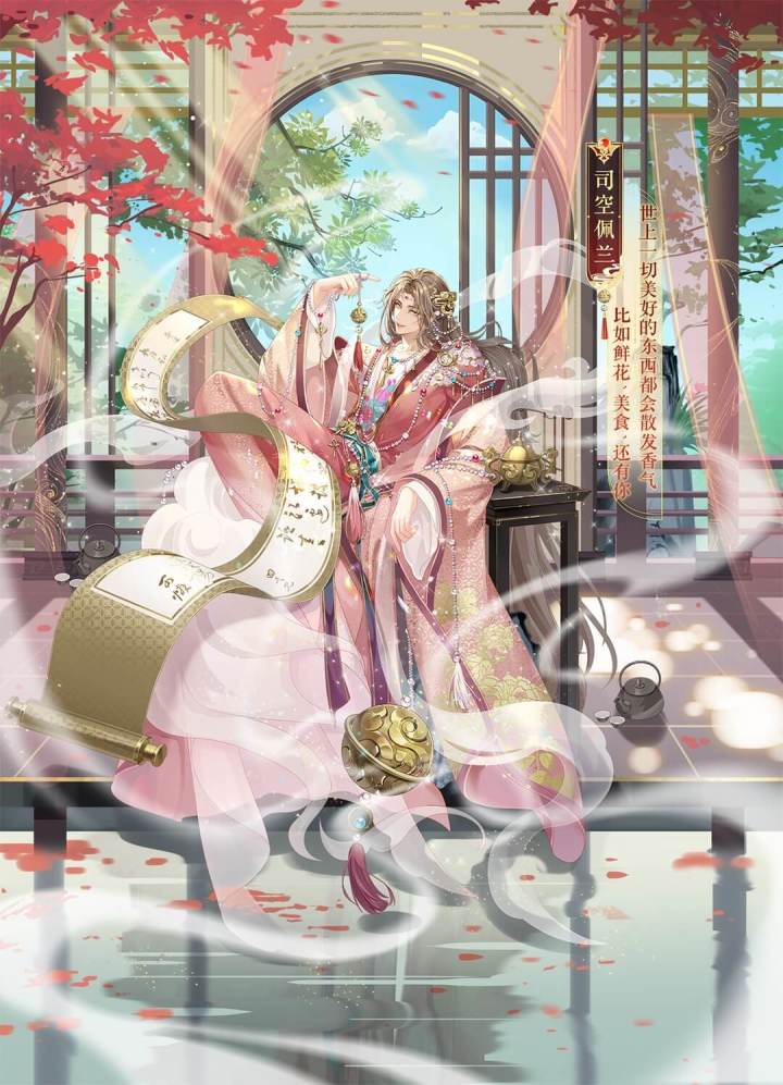 姓名:司空佩兰性格:雍容爱好:打香篆信物:春意熏语录:你的呼吸间萦绕着特别的芬芳,充满了让人难以抗拒的诱惑