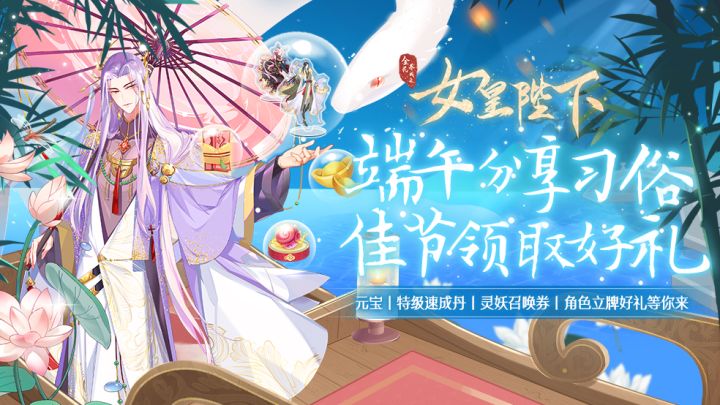 绿杨带雨垂垂重,五色新丝缠角粽。端午佳节,陛下今日吃粽子了吗?端午节,又称端阳节、龙舟节。端午节的习俗内容丰富多彩,挂、赛龙舟、拴辟邪以及洗草药水、祛病防疫等等,寄托了人们祈福辟邪、迎祥纳福、欢庆娱乐的愿望。亲爱的陛下,这个端午节,您做了什么有关端午的习俗呢?参与即可获得端午粽子礼包,更有机会获得实物侍从立牌噢!【参与方式】1、在本帖下回复有关端午节的习俗,并留下陛下的游戏用户名和ID2