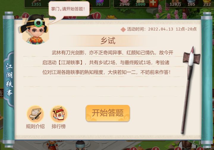 【江湖轶事】答题活动介绍&新服开启预告(文末有礼包码)