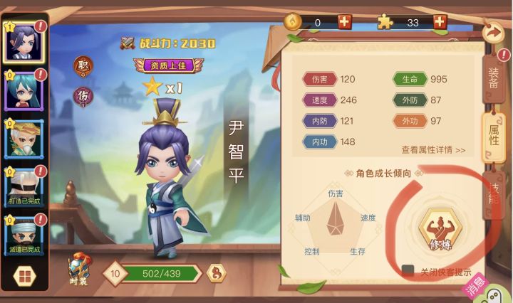 慕容先生经脉和1功法点满,专克单体输出。只是1功法点满概率也不太高(40%)。