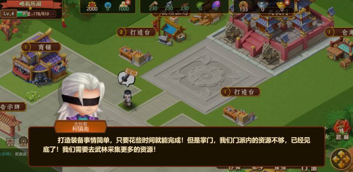 一大早,过儿前来为姑姑讨要几件装备,可惜家里的资源不太够了!让长老在打造台上制造几把短剑掌门借机来到武林,前往神农帮采集资源,不过这一路上,星宿派的毒物遍地都是,得小心点啊!来到神农帮,找到制图室,发现神农帮还有几张不错的图纸呢!找到野外的矿点,开始派遣我派弟子武三耕采集资源这下资源就不怕不够了。回城把造好的短剑交给过儿,这下,他该能哄小龙女开心了吧!