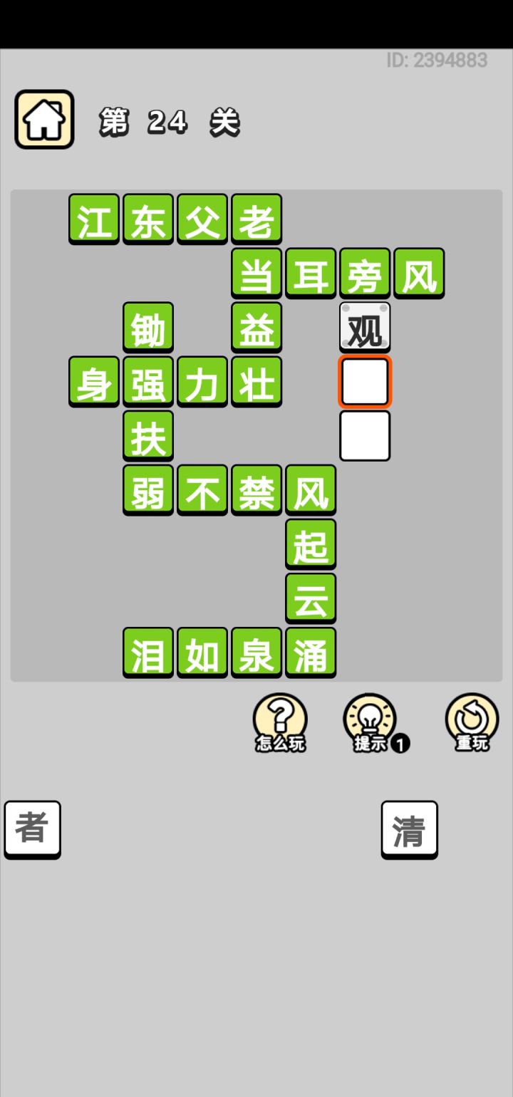 这个游戏考验大家的成语积累的怎么样😂,可以学到很多很适合学生党一类的人群玩,又可以玩还可以在玩中学习到知识,而且这不单单是将成语填完这么简单,我个人觉得既然都玩了就多少学点东西吧,这游戏再通关后还会给你提供成语意思,这点我觉得很好