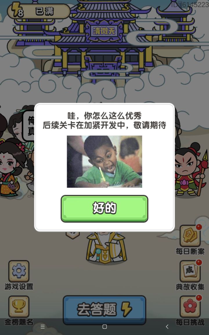 首先有错别字,还有不是成语的成语,五点体力这个也不想说什么,玩起来还是挺好的,但是游戏给我一种没用心作的感觉。