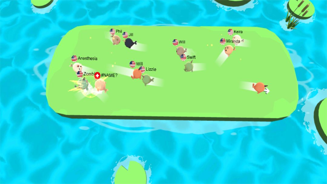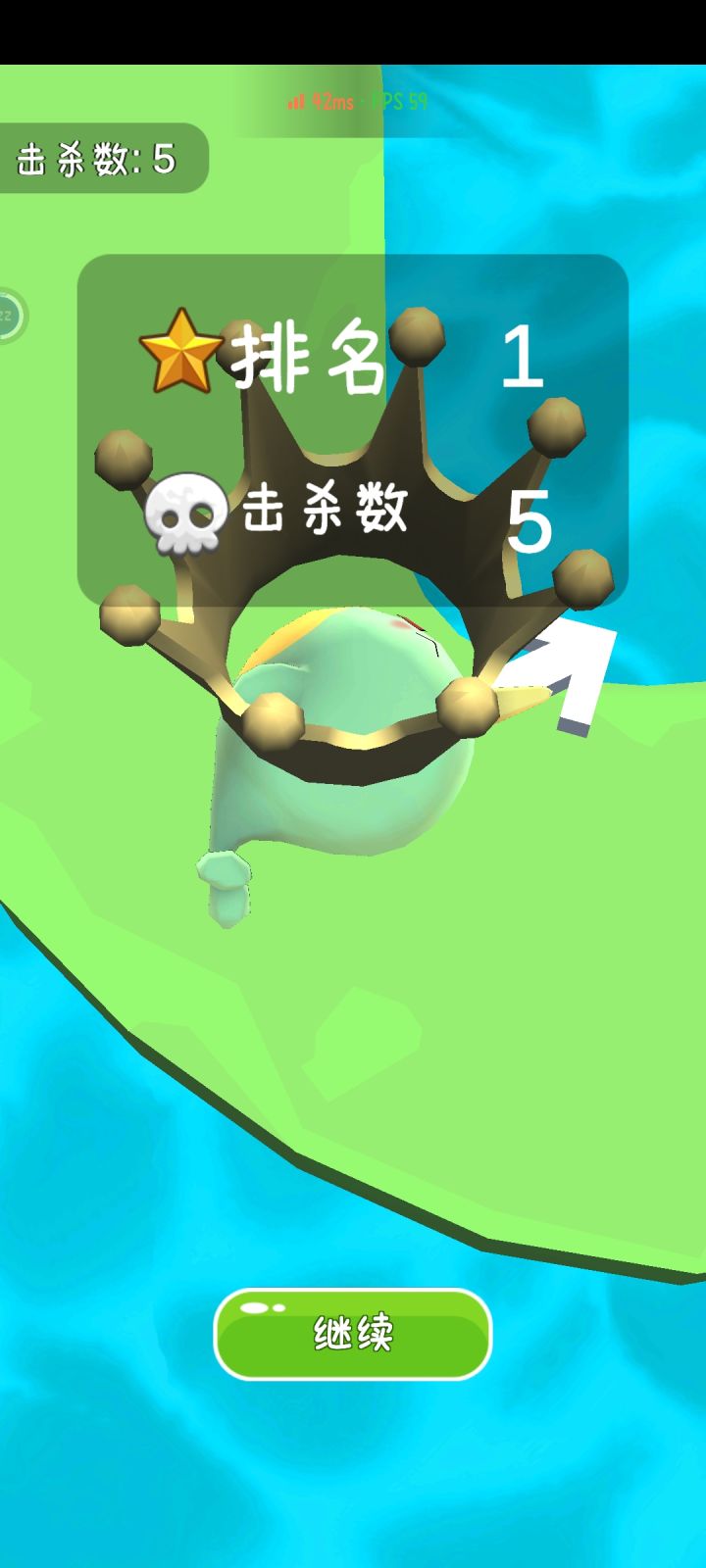 撞来撞去哈哈,吖~玩了3局就得过一次第一,有些不容易哈,这个把别人撞到海里可以增大一点身体