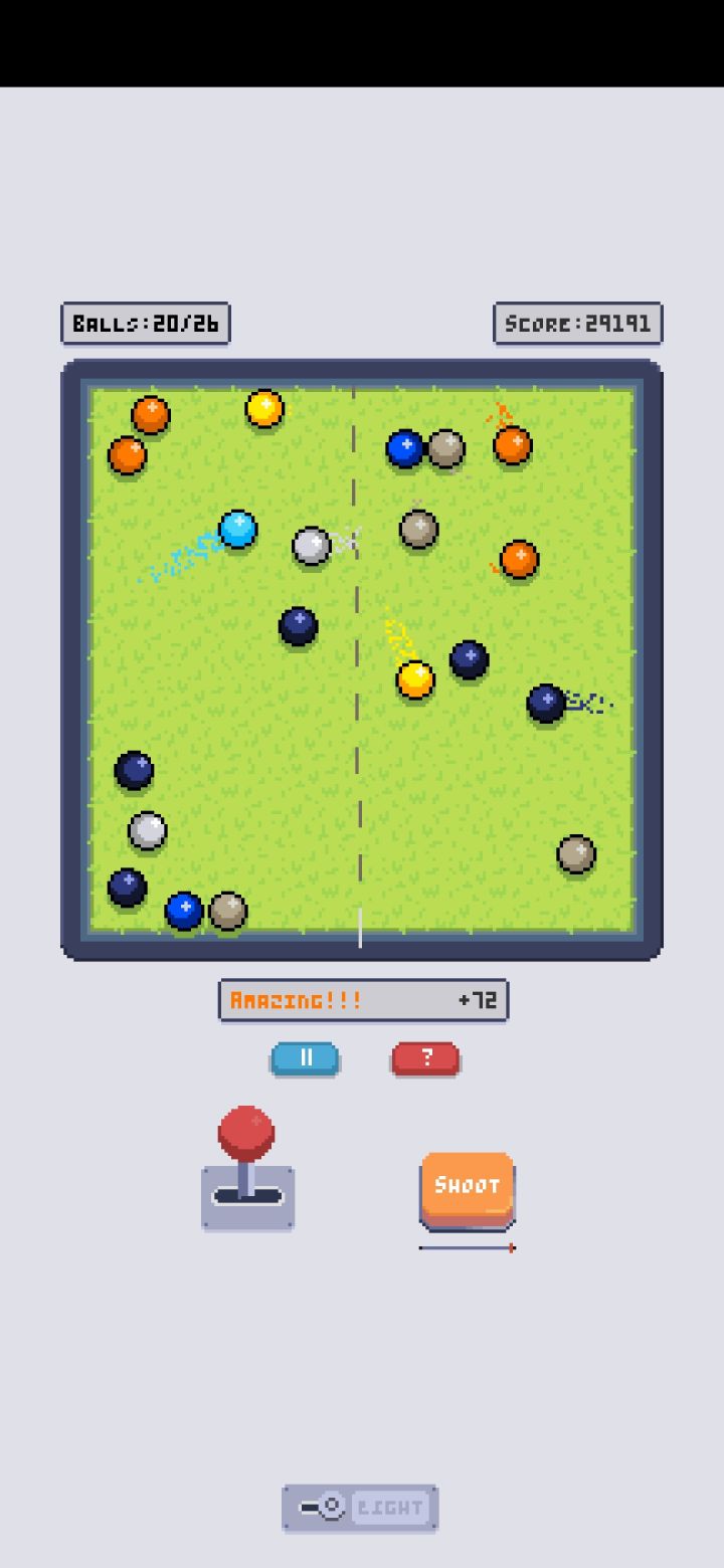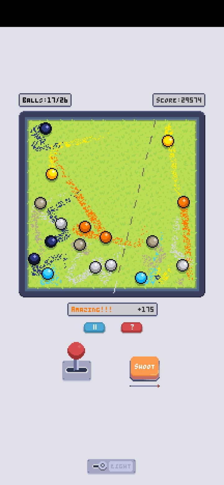 3w分留念看得眼睛有点吃不消了😂就先玩到这里吧,游戏本身还是挺不错的最终的蓝色球碰到一起会炸一下,还挺有意思的
