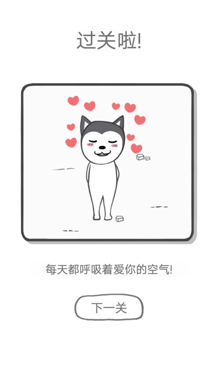 别问我怎么坚持下来的,判定很离奇,如果没成功,都是游戏的错(˚☐˚! )1.点击爱心2.拖动水瓶给狗3.手指点击哈士奇,直到出现爱心❤4.拖动哈士奇放至楼梯,点击5.点击桌子下方,将番薯拖给哈士奇6.将盘子里所有菜都给哈士奇吃,最后会夹到爱心7.点击袋子获得洋葱,放到砧板右侧,切菜8.揉肚子9.移开云朵,拼爱心10.点击碎片五次11.将左腿掰到头上12.这个就移到中间慢慢拼
