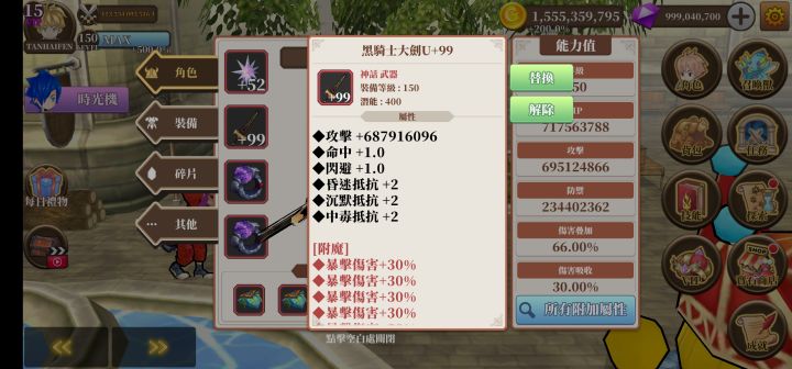 3亿攻击力,伤害步入十万亿(打的900层回廊)。这武器也忒恶心死我了,硬是不给我出三百多潜力的,不然攻击力起码得翻个倍到6亿多啊#无尽之旅黑帝斯之剑