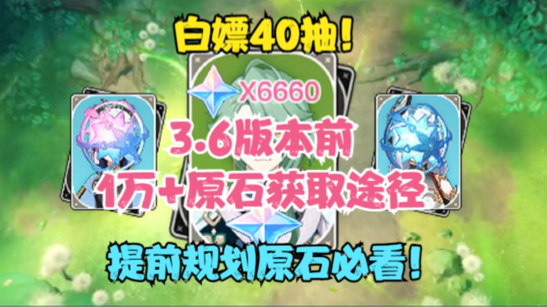 (原神)白嫖40抽!3.6版本前1万+原石获取途径!提前规划原石!