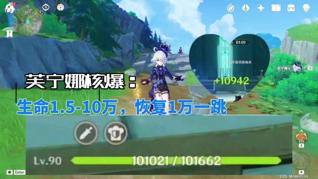 芙宁娜核爆:生命值1.5万-10万,生命值恢复1.1万一跳!