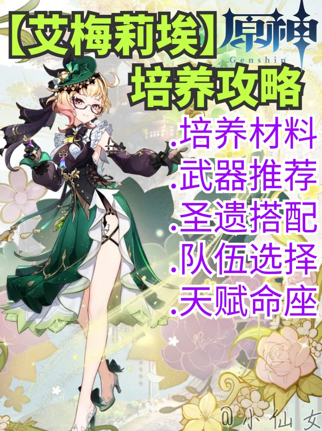 uid:100047993 枫丹时代最后一位新角色调香师艾梅莉埃已经登场了,作为原神历史上第一位和燃烧反应强相关的角色,她的强度到底如何呢?一起看看吧~ ▌P1 角色定位 ▌P2 天赋技能 天赋分析 [普通攻击A] 效果:普攻造成四段伤害 作用:6命前普攻没有用 [元素战技E] 效果:创造柔灯之匣,间歇性的对附近单个敌人造成草元素伤害,附近敌人处于燃烧状态下,则间歇性产生香韵,产生2枚香韵后,柔灯