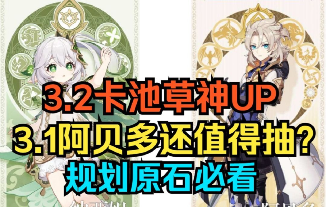 【原神】3.2卡池草神UP!3.1阿贝多还值得抽?天赋,命座,配队,武器全面详解!规划原石必看!