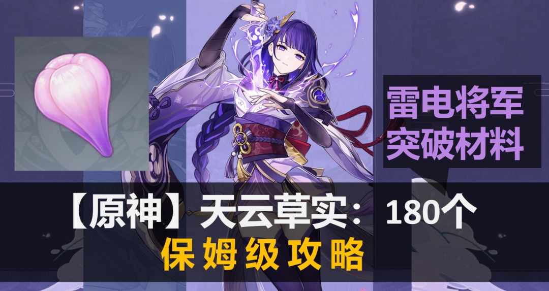 hi,各位好,这里是红豆儿z 现阶段专注于原神材料保姆级攻略制作,感觉兴趣的可以关注一下 本期是 雷电将军突破材料 天云草实:180个保姆级收集攻略 =目录= 1.雷电将军的突破材料及需求量一览 2.天云草实路线图 3.刀镡路线攻略 一、雷电将军的突破材料及需求量一览 雷电将军突破材料是天云草实,如果有计划要练的小伙伴 可以先收集起来,拉到90级 要的天云草实总数要 168个,天云草实的刷新时间为