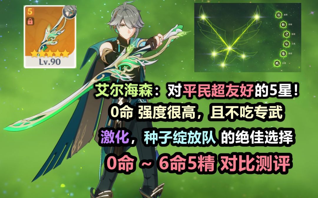 【原神】艾尔海森:超强大C!激化,绽放队的绝佳选择,对平民很友好,0命就很强还不吃专武!0命~6星5精详细对比评测
