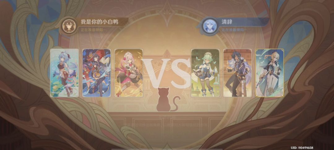 UID 110491658 玩家 我是你的小白鸭 女仆打双风小劣,牌运决胜! 运营思路 开局找甘雨天赋,狼末。甘雨速速触发天赋,然后女仆斩杀即可。琴是往右换人,砂糖是往左换人,卡好位置其实就相当于对手免费帮我们换人!