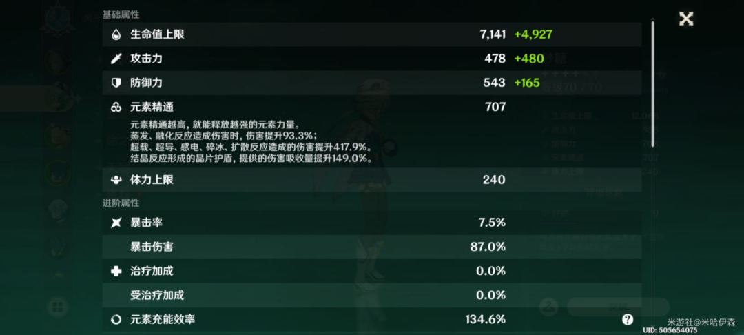 旅行者:自从接触了原神,我对元素和反应的理解更加深刻了。 :电解水时正负极分别会发生什么现象?——感电! :那如果电解冰水呢?——感电加超导! :小明你出去。 简评: 综合强度(8分):强度尚可。作为辅助:双天赋加精通、风套减抗、6命的转化加伤以及佩戴祭礼时可以为全队提供可观的元素充能。同时也可以作为副c:技能倍率不低加上自身等级突破加的是风伤,高命给予资源培养,同温迪一样,完全可以胜任副c这一工