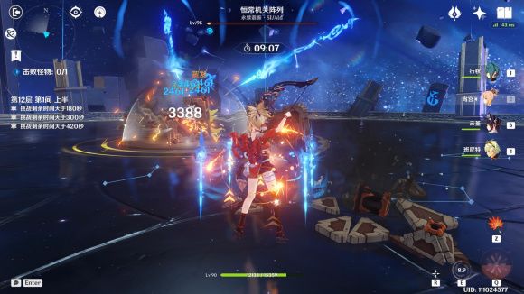 先上结果,目前我使用的宵宫配队是宵宫云堇行秋班尼特,12-1上半可以做到第一个e直接打出分裂,第二个e连小的带瘫痪的一起收掉。正常大概是47s,刚才为了截图去打了一次,buff是20%充能,用了53s。 而在相似配件的前提下,我的三命一精雷国用时是45s。
