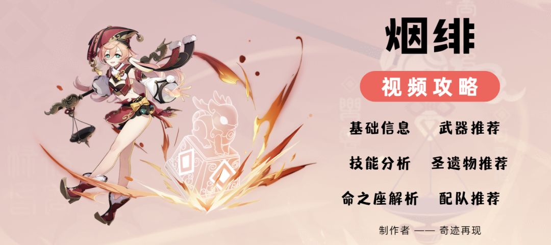 各位旅行者大家好,这里是奇迹再现~ 原神5.3版本下半卡池已经开启,五星火元素角色烟绯在集录祈愿中迎来复刻,本篇视频攻略将从基础信息、武器推荐、圣遗物推荐、技能分析、命之座解析和配队推荐这六个维度带来详细的介绍~#新年新安利