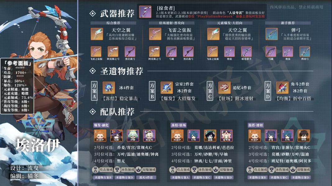 2.埃洛伊、辛焱圣遗物武器搭配。