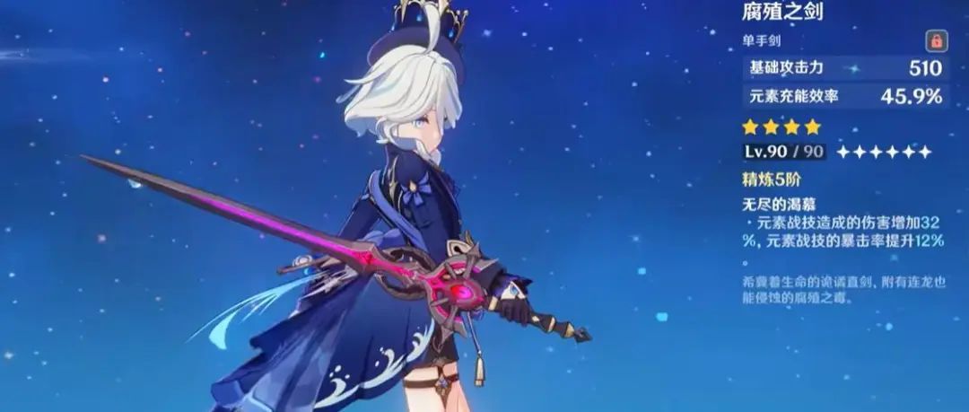 UID:100940241 五星武器不是想有就有,但如果没有五星武器,我们还可以选择一些好用的下位替代武器。原神上线这么久,各种活动和武器非常丰富,总能找到一些不错的替代品。今天,我们来聊聊原神五神中,平民玩家适用的几个下位替代武器。 芙宁娜 首先是芙宁娜,她有一把非常好用的下位替代武器——【腐殖之剑】。这把武器是活动赠送的限定武器,性能非常好,但只有老玩家才有: 如果没有,可以选择【灰河渡手】,