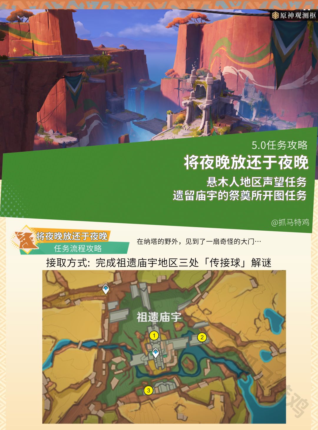 UID 137951919 大家好,这里是抓马特鸡。本帖给大家带来5.0世界任务——将夜晚放还于夜晚的攻略。 声明:素材来源为创作体验服,不代表最终上线的数值和效果,请以正式服内容为准。 #任务攻略 #探索解谜 #原神荣花与炎日之途
