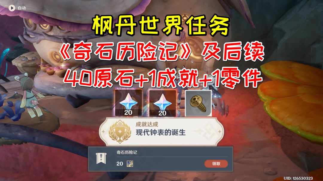 【原神】枫丹世界任务《奇石历险记》及后续,40原石+1成就+1零件