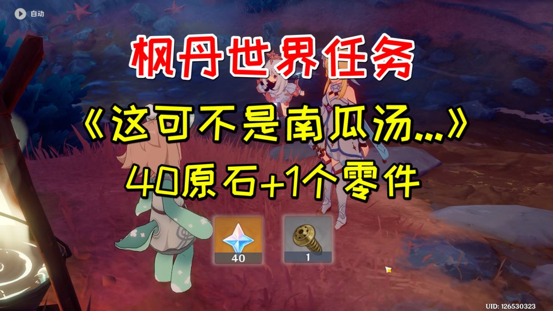 【原神】枫丹世界任务《这可不是南瓜汤》,40原石+1零件