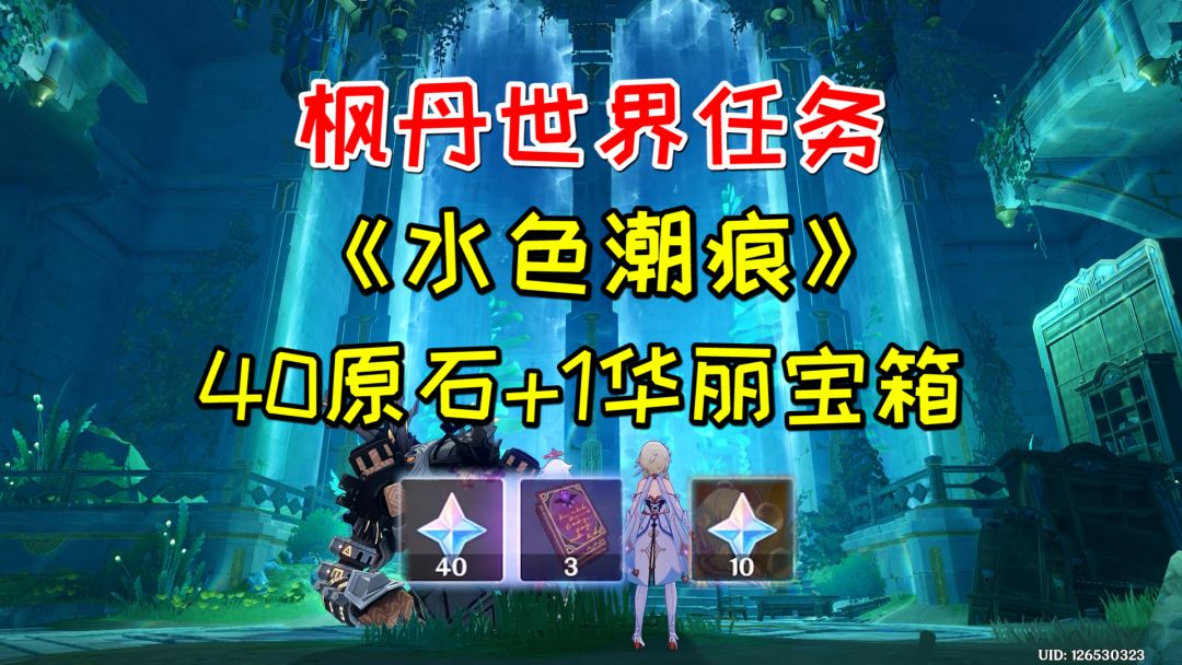 【原神】枫丹世界任务《水色潮痕》,40原石+1华丽宝箱