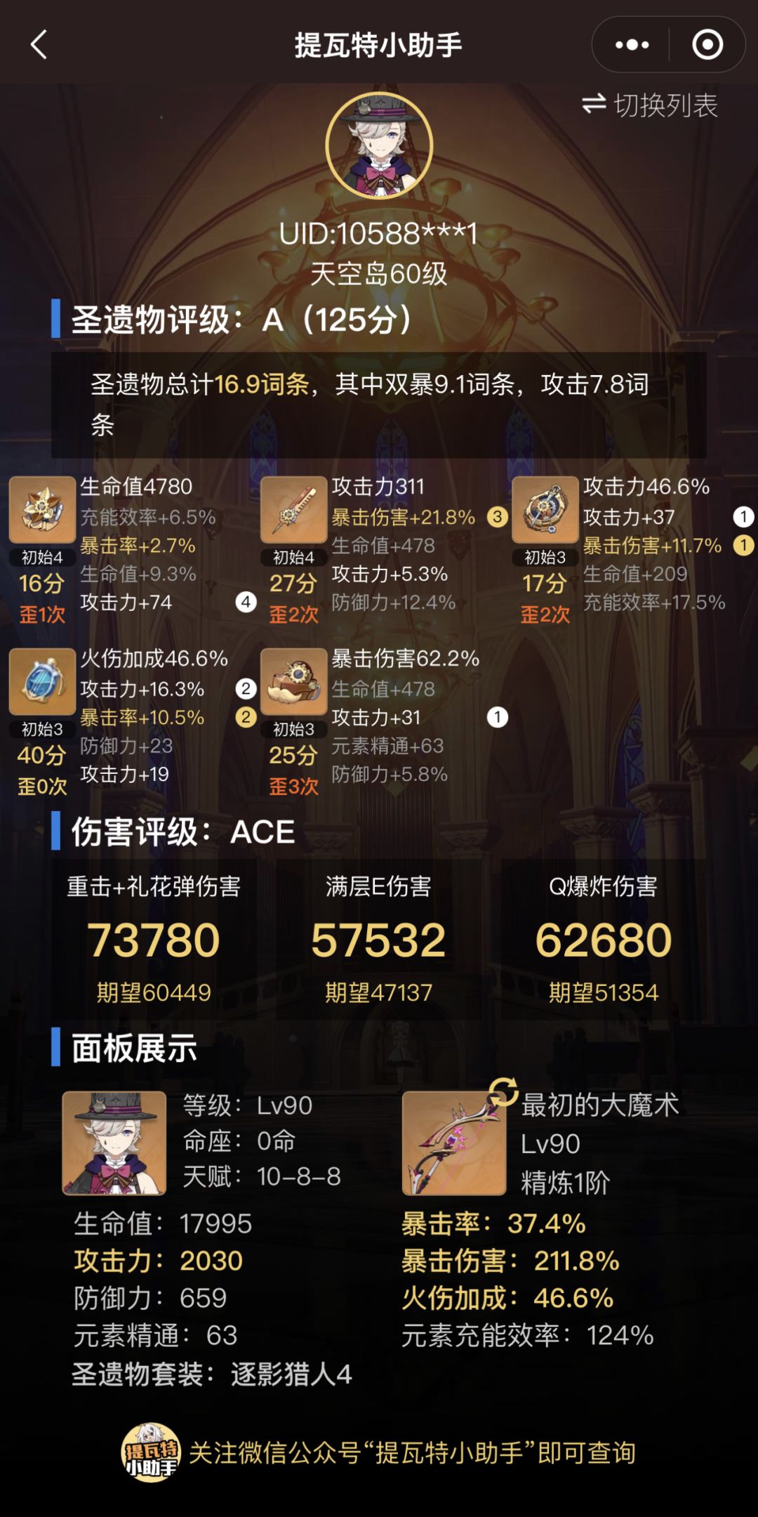 原神4.0枫丹版本已经更新,新五星角色林尼也已经正式上线。相信大家都很好奇这个林尼强度到底怎么样,伤害高不高?Z哥第一时间就抽到了林尼,今天天赋本和武器本开启之后,也拉完了等级和天赋,力求给大家测试一下林尼最真实的表现。在测试之前,先给展示一下Z哥使用的伤害一下基本情况,武器使用的是精1最初的大魔术,天赋等级10-8-8,命之座0命,圣遗物用的是逐影猎人4,攻击沙、火伤杯、暴伤头,最终面板以及伤害