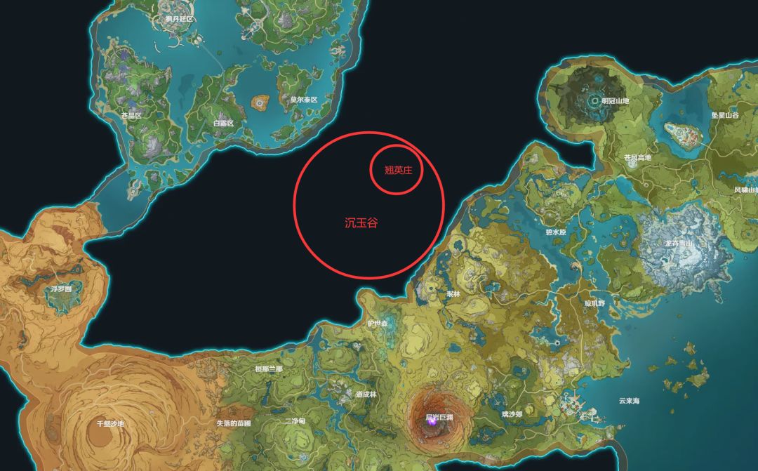原神目前是按照国家的顺序去开放地图,目前已经更新到了4.3的枫丹地图。但其实蒙德璃月和稻妻的地图并没有完全开放完,不过官方已经在剧情或书籍中或多或少暗示了未来还会上线的地图。 下面我们就来看看有哪些地图吧。1.沉玉谷 沉玉谷的位置在璃月和枫丹的中间,具体的位置如上图。有消息说将在4.4版本的海灯节正式开放。开放之后,璃月就可以直接连通到枫丹了,而不像现在那样需要从须弥绕路。沉玉谷最早是在圣遗物余响