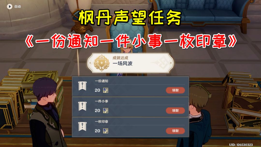 【原神】枫丹声望任务《一份通知一件小事一枚印章》,成就《一场风波》