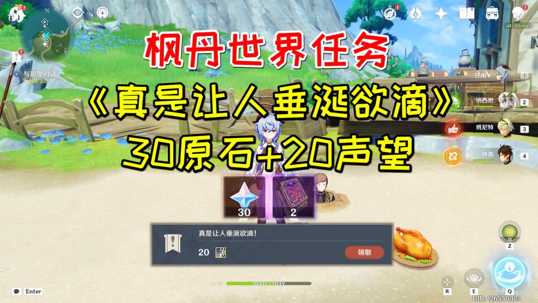 【原神】枫丹世界任务《真是让人垂涎欲滴》,30原石+20声望