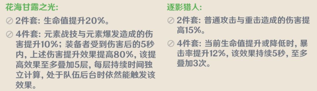 关于哪些老角色会在枫丹喝汤,之前虽然也写过类似的话题,但那时候枫丹版本还未上线,而如今枫丹已经实装了,新圣遗物、新角色、都已经上线,枫丹版本的主要玩法也已经初见端倪了。 今天就来再和大家聊聊枫丹版本,有哪些老角色可以从枫丹主流玩法中获利。在这之前,首先要知道枫丹主流会是什么玩法。 一、枫丹主要玩法机制 3.6版本推出了圣遗物花海套和4.0版本上线的圣遗物逐影猎人,这两套圣遗物都是通过生命值的变化来