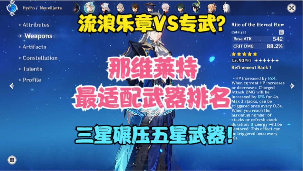 【V4.1攻略】#武器攻略#【原神冒险团】能给那维莱特用吗?无垠蔚蓝之歌武器解析