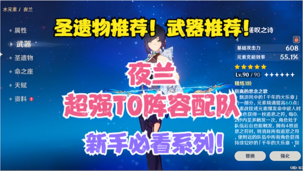 (原神)夜兰超强T0级阵容配队!圣遗物推荐!武器推荐!