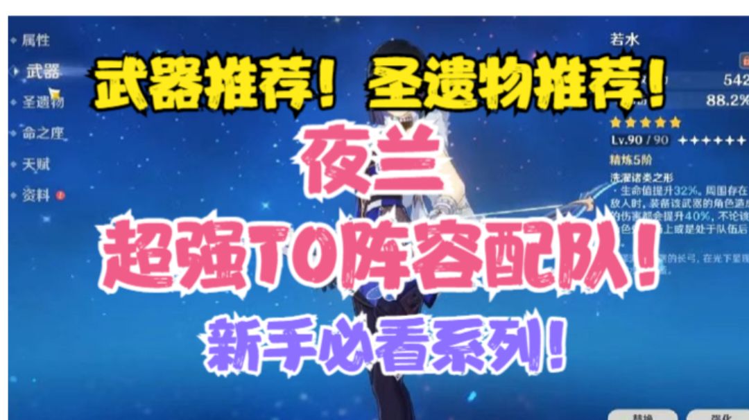 (原神)夜兰圣遗物推荐!武器推荐!超强T0级阵容配队!