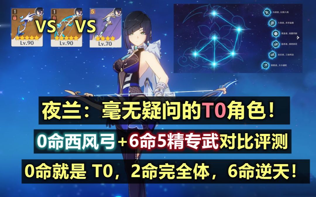 【原神】夜兰:绝对的T0级强度:0命就是T0,2命完全体,6命逆天!但不建议抽武器!0命平民VS6命大佬对比评测