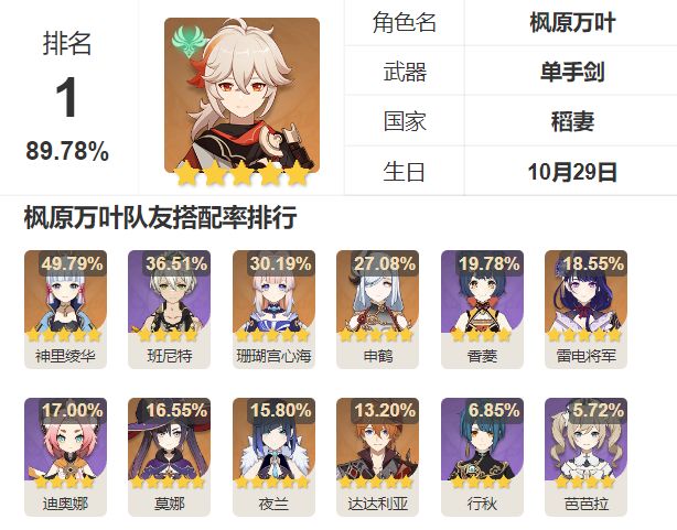 大家好,我是做梦都在吃瓜的古霜卡比。 3.8深渊使用率来了。本期深渊虽然也有一些阵容筛选小动作,但总体来说难度下降很多,整体呈现出一种百花齐放的姿态,使用率也均摊到大部分角色,没有像上期那样两级分化。虽然这期的氛围比较喜庆,但从榜单上也能看出一些微妙的端倪。枫丹马上就要到了,环境即将开始新一轮的变化。因此这次的分析会激进一些,心脏承受不了建议先溜。前两名还是万叶和草神,这其实也没什么好说的。 上路