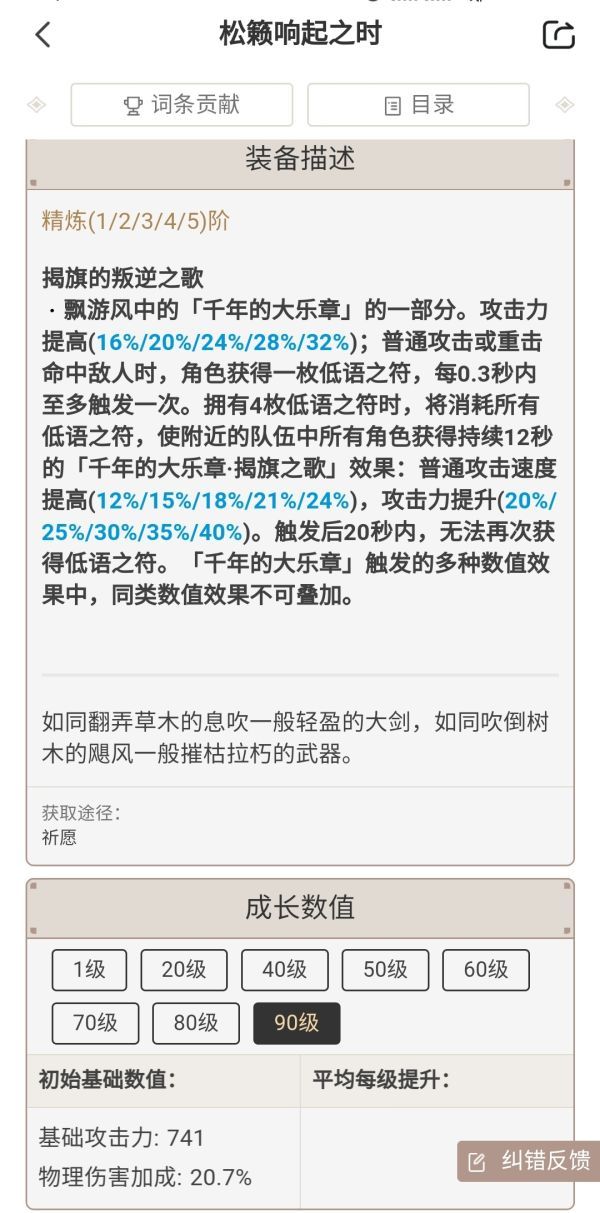 今天来聊聊优菈到底什么面板才算是毕业了 这篇稍微有点中后期45~55级多看看,低于等级可以提前看看学习一下 这里我以优菈专武来算(毕竟每个觉得的梦想都是拿到属于Ta的专武吧)松籁响起之时 这里不难看到优菈的专武是提升物伤的,那么拿到了专武或者未来拿到了专武的人圣遗物怎么处理呢,至少对我一个新人来说圣遗物这个东西很好理解,装备嘛,哪个游戏没有装备,看了各种攻略回来也了解了,2命及以上优菈带4苍白,0