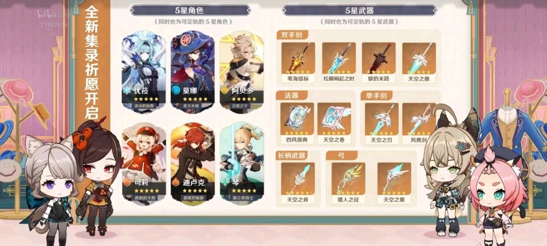 哈喽大家好,我是澈晓。 先和大家说声抱歉,由于个人原因(改论文去了可恶的毕业狗)所以今天很晚才开始敲键盘。在今天中午,官方终于放出了1.5版本的第2期卡池具体内容!万众瞩目的优菈(wlp)终于来啦! 所以这篇帖子为大家带来的就是对于即将到来的新卡池,规划党应该如何取舍。 角色up池:优菈 辛焱 行秋 北斗 武器up池:松籁响起之时 风鹰剑 祭礼剑 雨裁 匣里灭辰 祭礼残章 弓藏 角色池 在对角色进