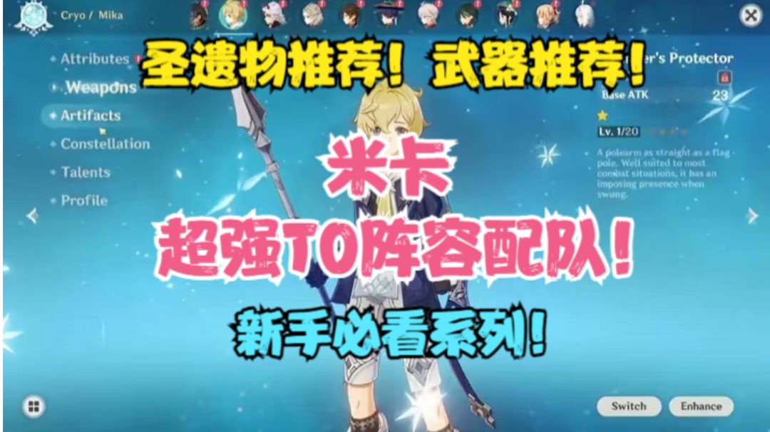 (原神)米卡圣遗物推荐!武器推荐!超强T0级阵容配队!