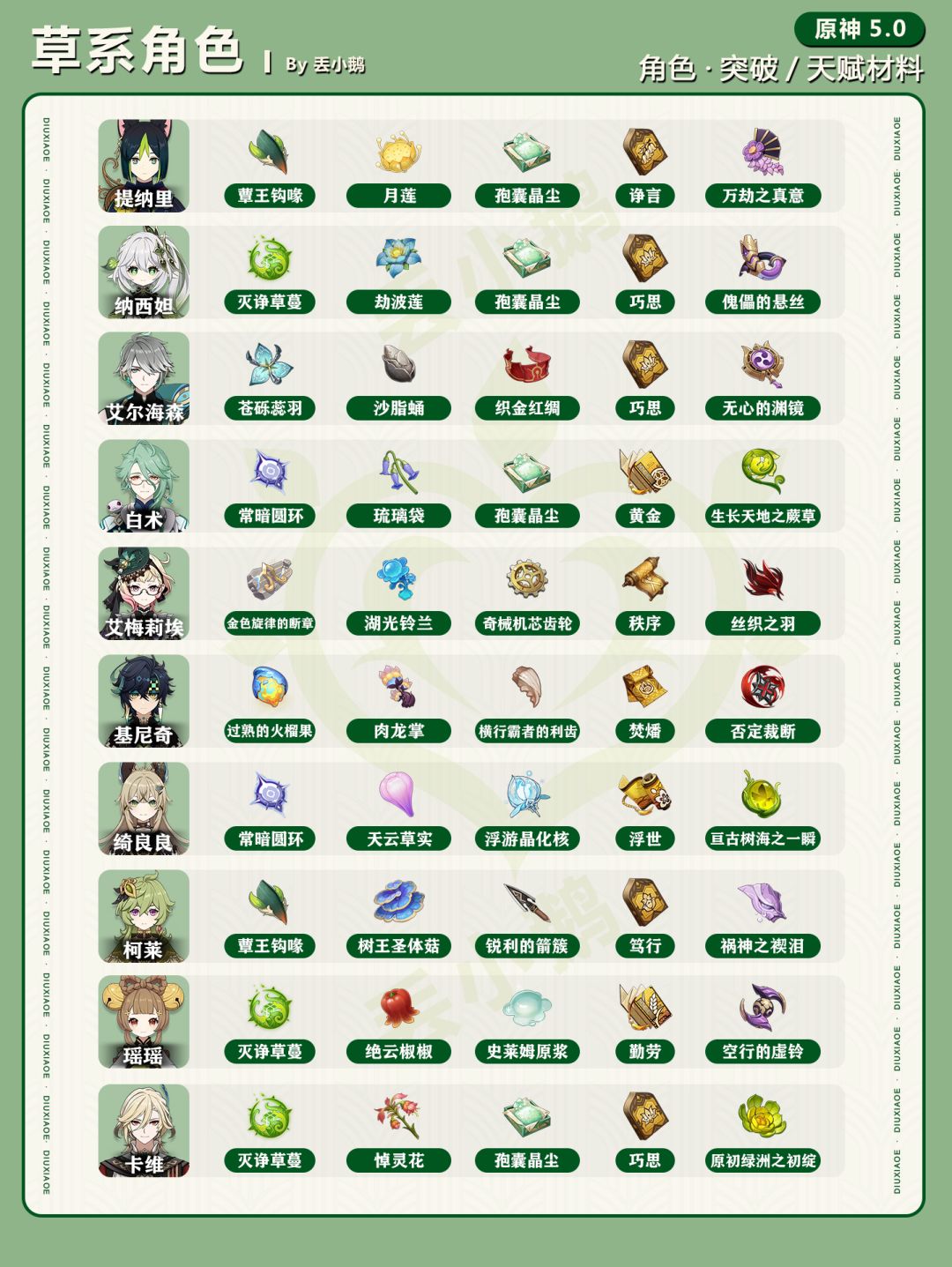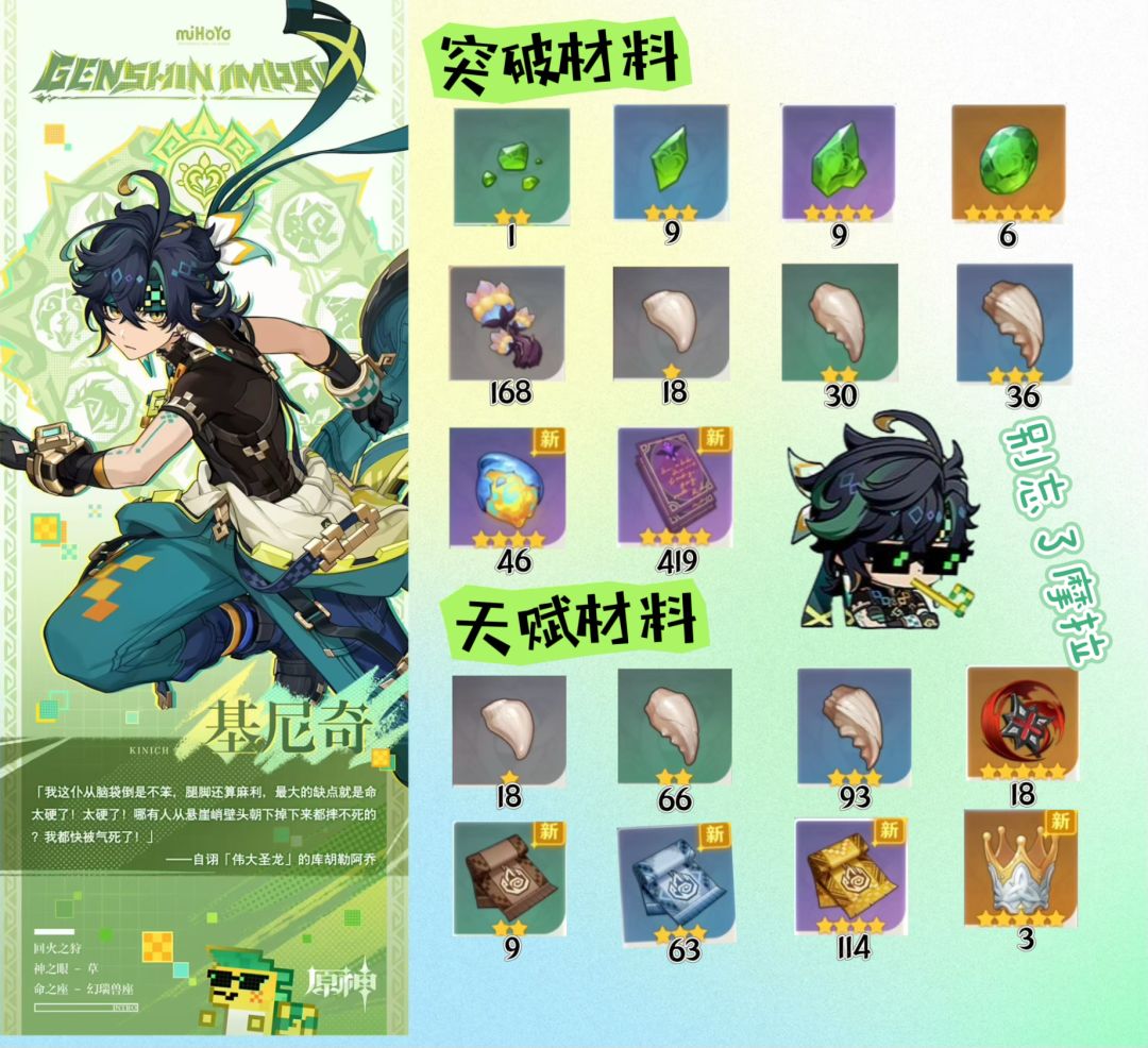 【原神5.0】全角色突破/天赋材料(基尼奇)