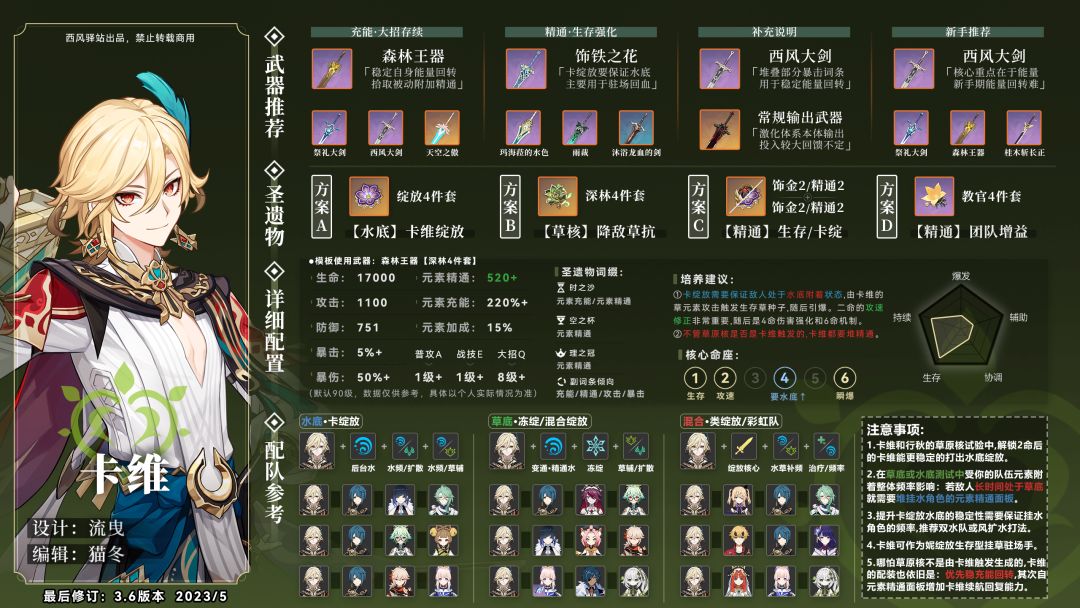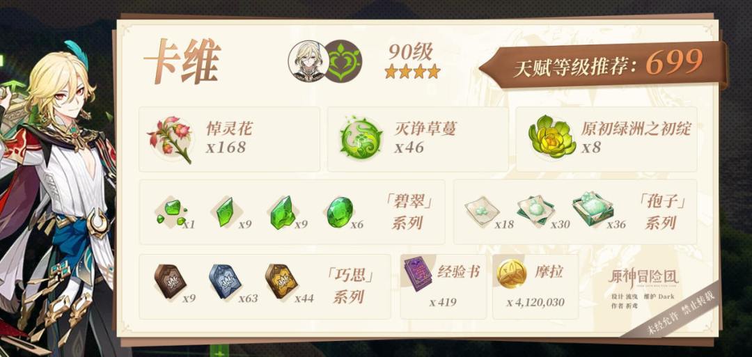 【V3.6攻略·角色攻略】角色养成素材全解——卡维