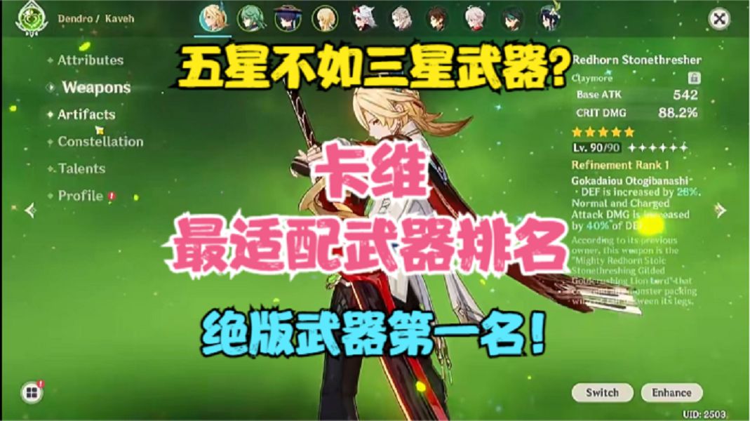 (原神)卡维最适配武器排名!绝版武器第一名!三星武器碾压五星