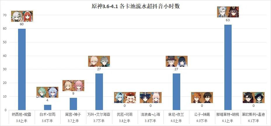 原神4.1版本下半的莱欧斯利、温迪卡池截至目前卡池已经是来到了第4天,按照正常情况,一个卡池流水的峰值基本都在卡池开放的前几天,卡池表现如何,基本已经能够看出来了。两位角色的流水表现究竟如何呢?今天就和大家一起看看。话不多说,直接给大家上图。一、卡池流水预估由于抖音流水较为固定,因此可用流水超过抖音多长时间来进行辅助参考。需要注意的是,无论是哪个平台的数据,由于算法不同的原因,只能反映大致的趋势,