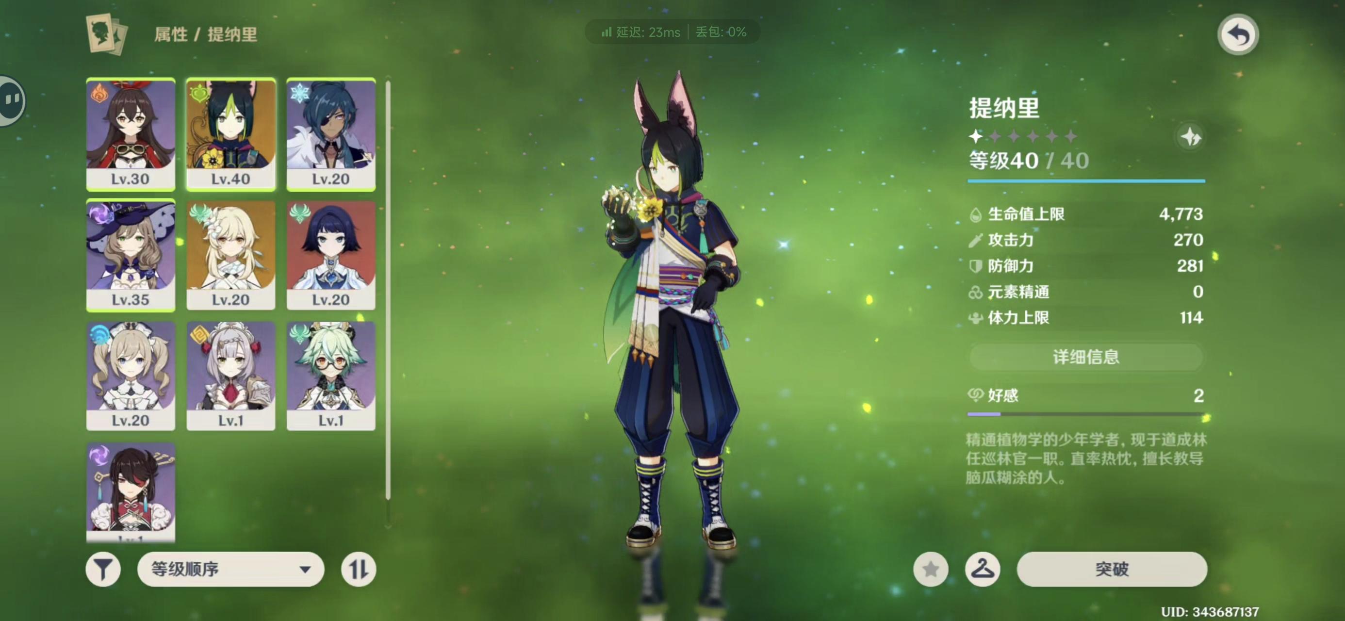 这个号是最近才开的。玩了好几天。才搞到23级。地图点位还有那么多没有开。也没有主c,提纳里是活动邀请来的。有点想抽少女。但是又怕抽了养不起来。