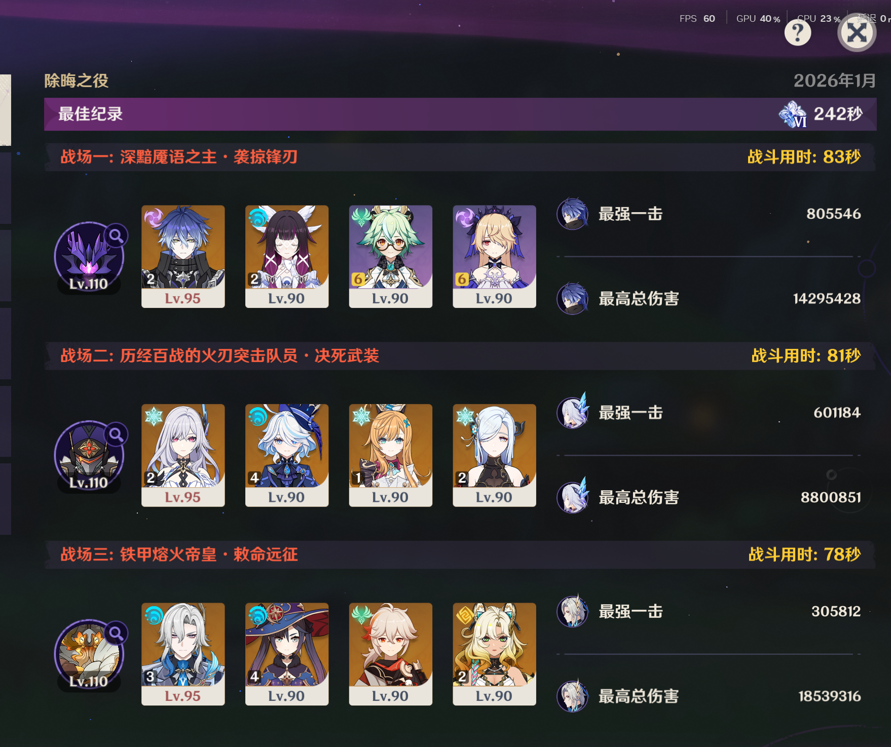 6+0少女带一群0命(只有龙和鹿是1命),连n6都能删除任意一间,可惜其他队伍金数不够,依旧只能打个n5结束,但确实是过瘾了