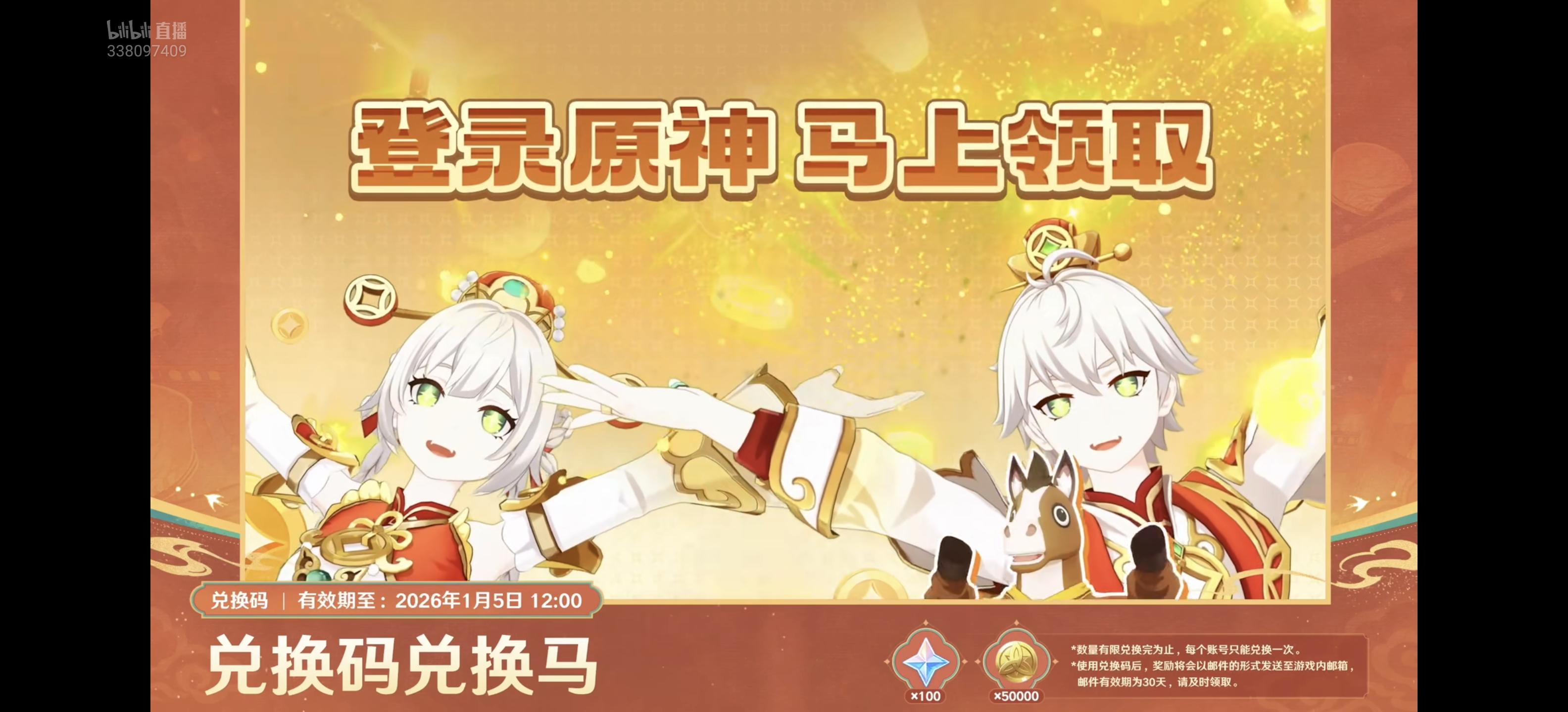 (已过期)跨年晚会兑换码共200原石